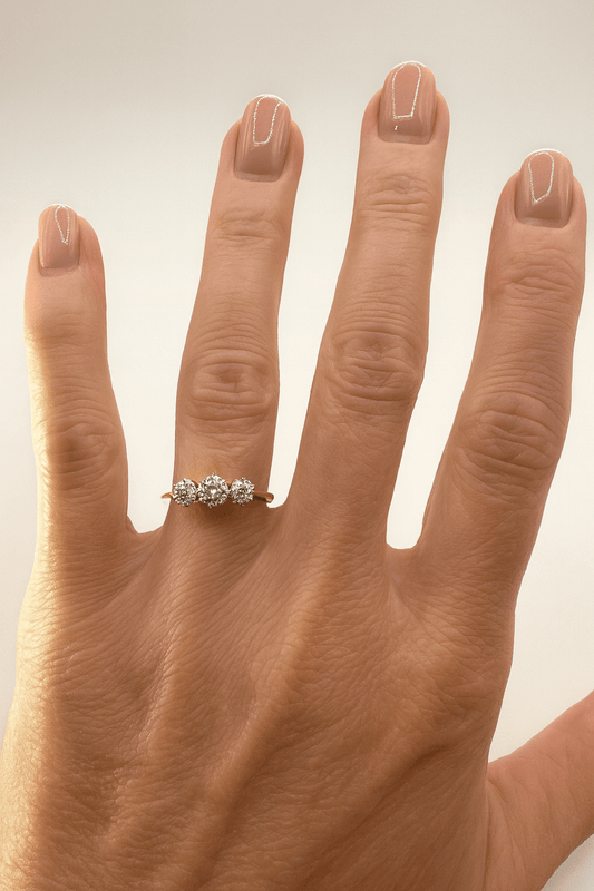 0.70 Ct Natural Old European Cut Diamond Trilogy Ring 18k Gold - WGI Certificate £2800