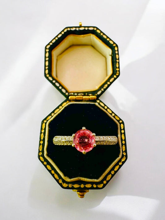 0.65 Unheated Pink Sapphire and Natural Diamond Ring - 18k White Gold - WGI Certificate £2,780