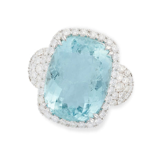 14.90 Ct Aquamarine, 1.20 Ct Diamond 18Ct White Gold Cocktail Ring - WGI Certificate £14,000