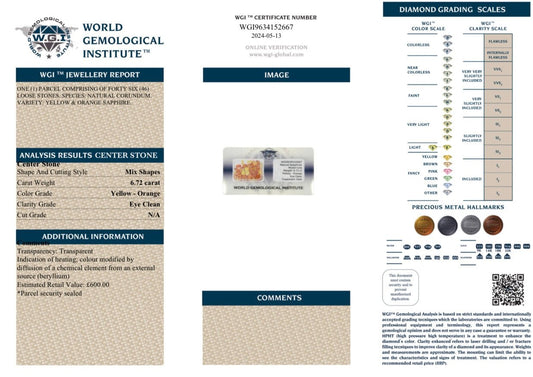 6.72 Ct loose orange and yellow sapphires (sealed pack) - WGI Certified £600