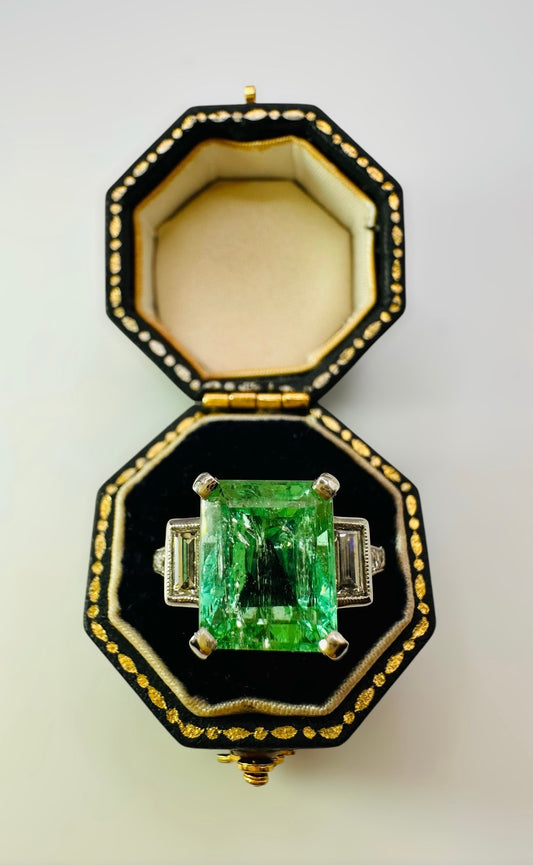4.40 Ct Colombian Emerald, 0.50 Ct Natural Diamond Ring Platinum- WGI Valuation £20,000