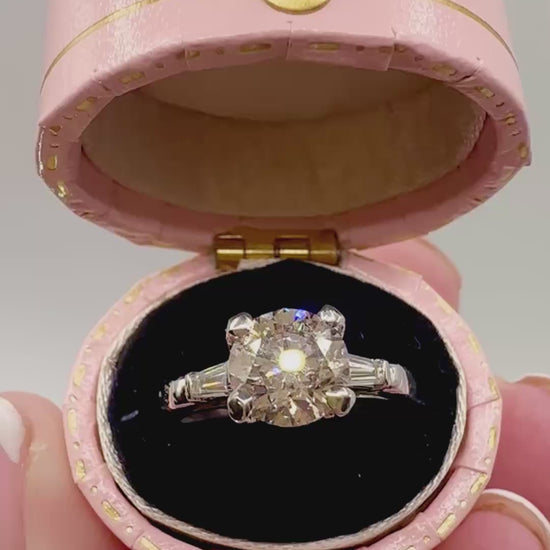 Celebrate your love with a ring as unique as your story. This stunning platinum engagement ring is set with a 1.51ct Round Brilliant Cut Natural Diamond, complemented by tapered baguette cut diamond shoulders that add refined sparkle and balance.