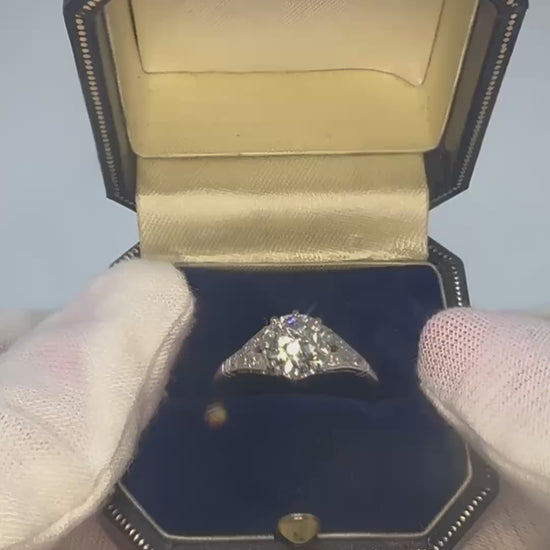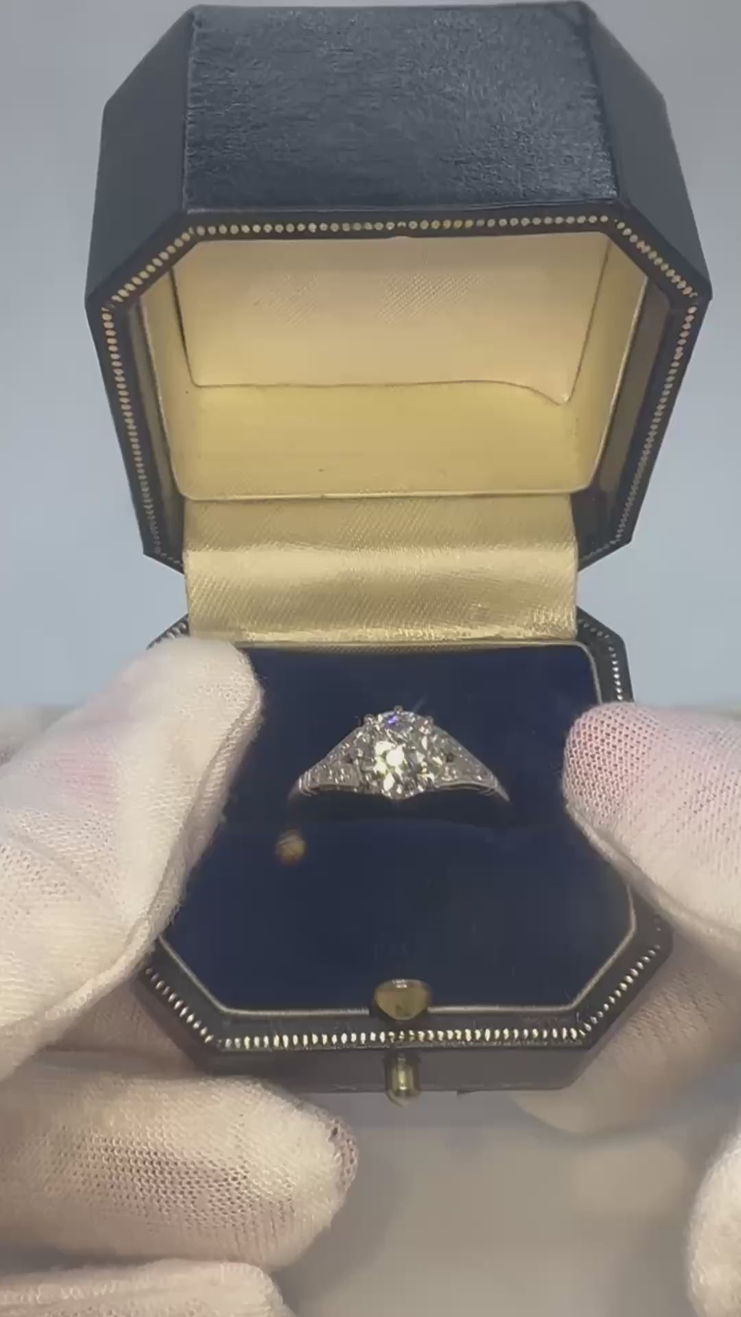At the heart of this ring is a 1.50ct Old European Cut natural diamond, glowing with that unmistakable antique fire you simply cannot recreate today. Chunky facets, soft candlelight sparkle, and unapologetic romance.