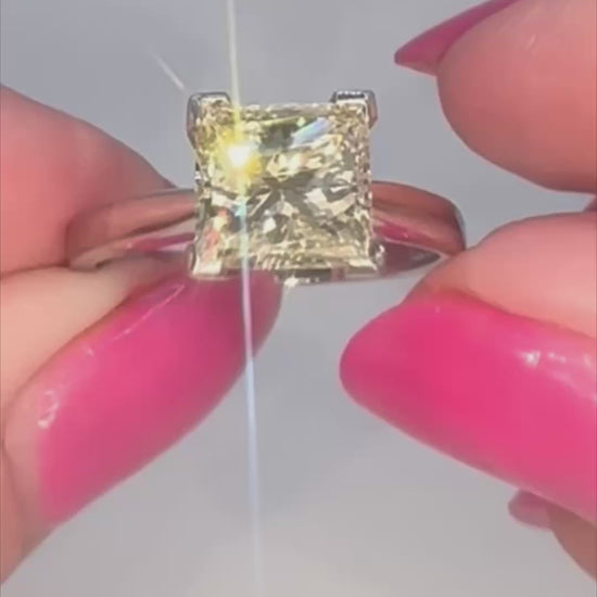 2.77 Ct Princess Cut Natural Diamond Ring - VS1 Clarity - Platinum - WGI Valuation £26,700