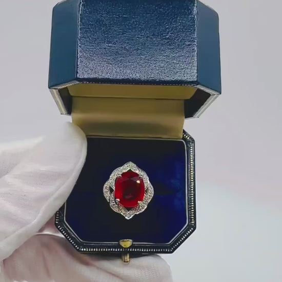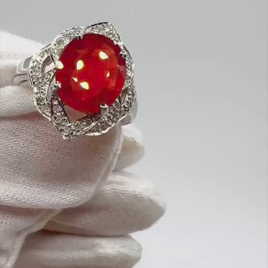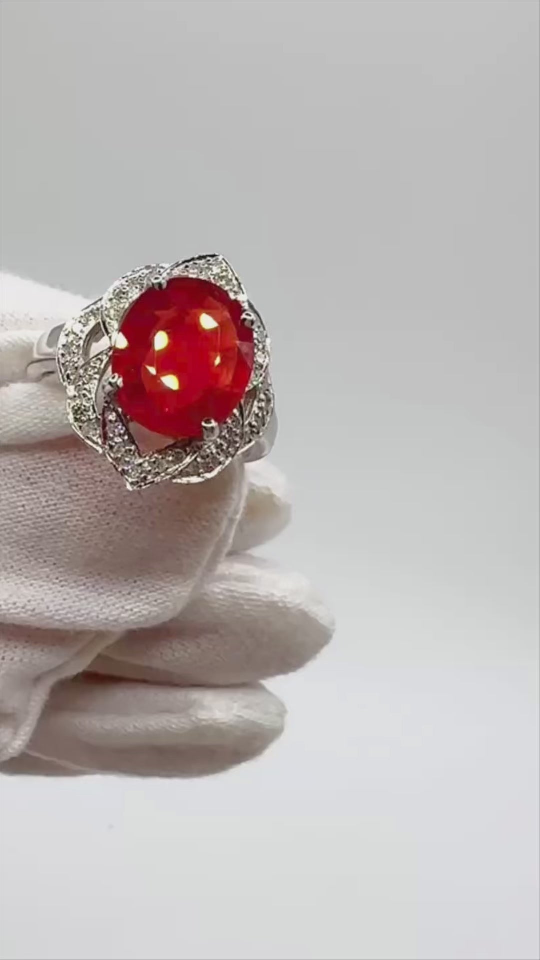 ⚡ A blaze of Madagascar fire wrapped in sleek 18K white gold, framed by icy diamond sparkle. One-of-a-kind, certified, and ready to make a statement.